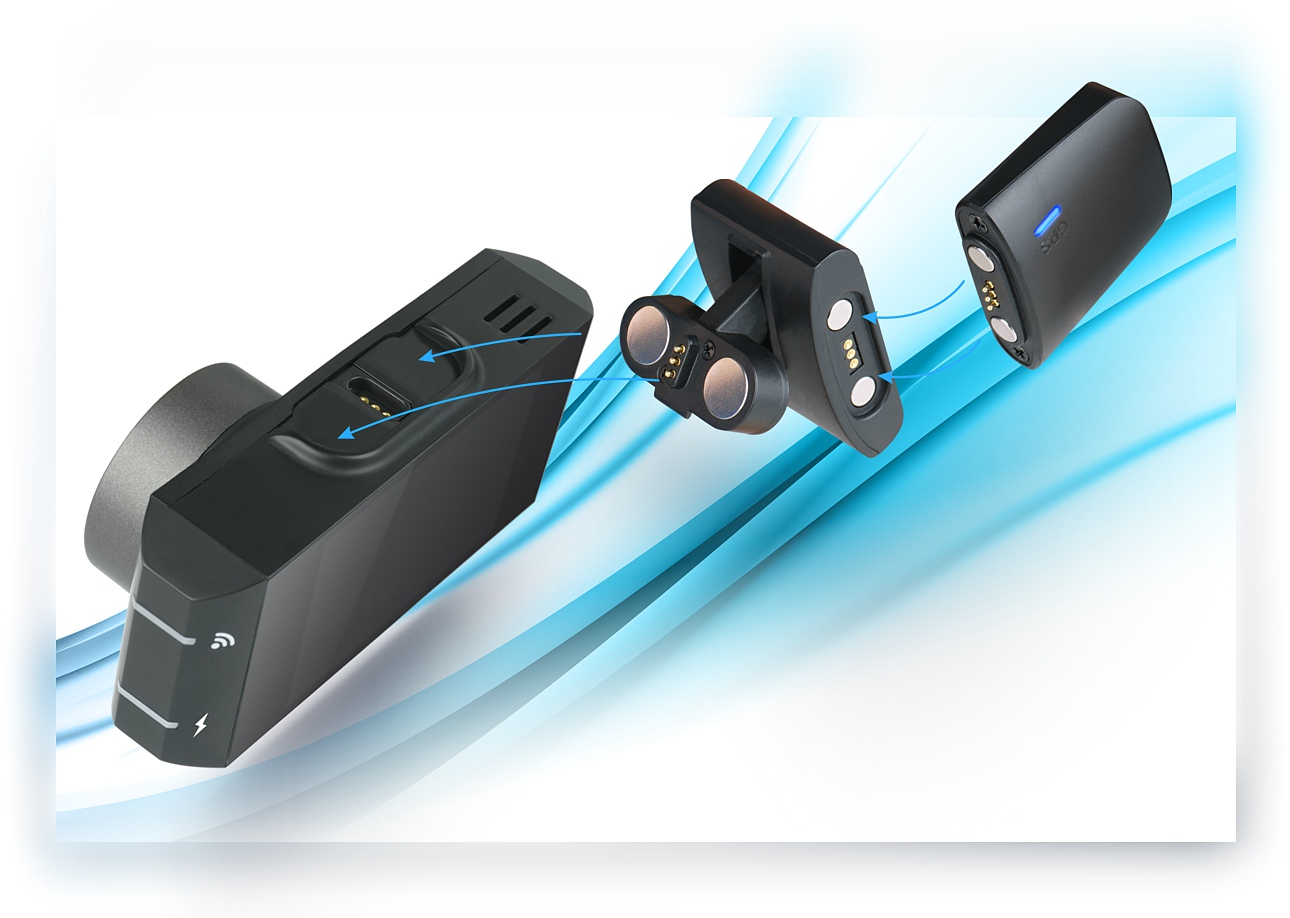 Kamera samochodowa Xblitz V2 montowana jest za pomocą uchwytu magnetycznego. Dzięki takiemu rozwiązaniu z łatwością w razie potrzeby możemy zdemontować urządzenie i zabrać je ze sobą. Uchwyt posiada złącze wielostykowe, które zasila urządzenie.