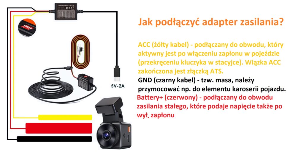 Adapter zasilania do kamery samochodowej Vantrue