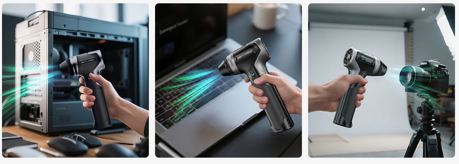 Solidna dmuchawa Vantrue Power T800 to sprzęt, który można wykorzystać w wielu systuacjach. Pomocny zarówno przy usuwaniu kurzu z klawiatury i innych trudno dostępnych miejsc jak i czyszczeniu większych rozmiarów sprzętów jak pojazdy. Niewielkie i ergonomiczne rozmiary urządzenia sprawiają, że jest on niezwykle mobilny i poręczny.