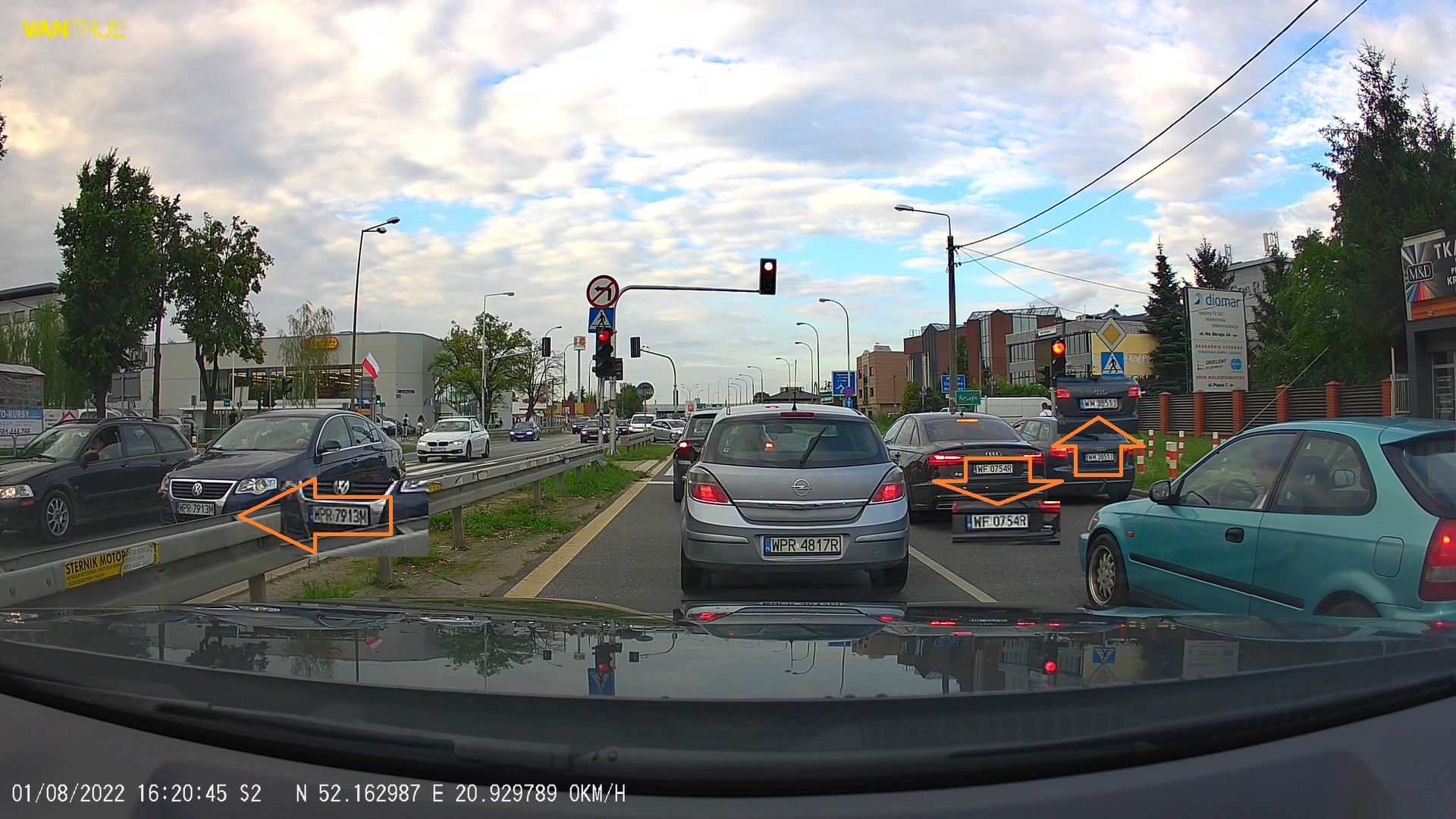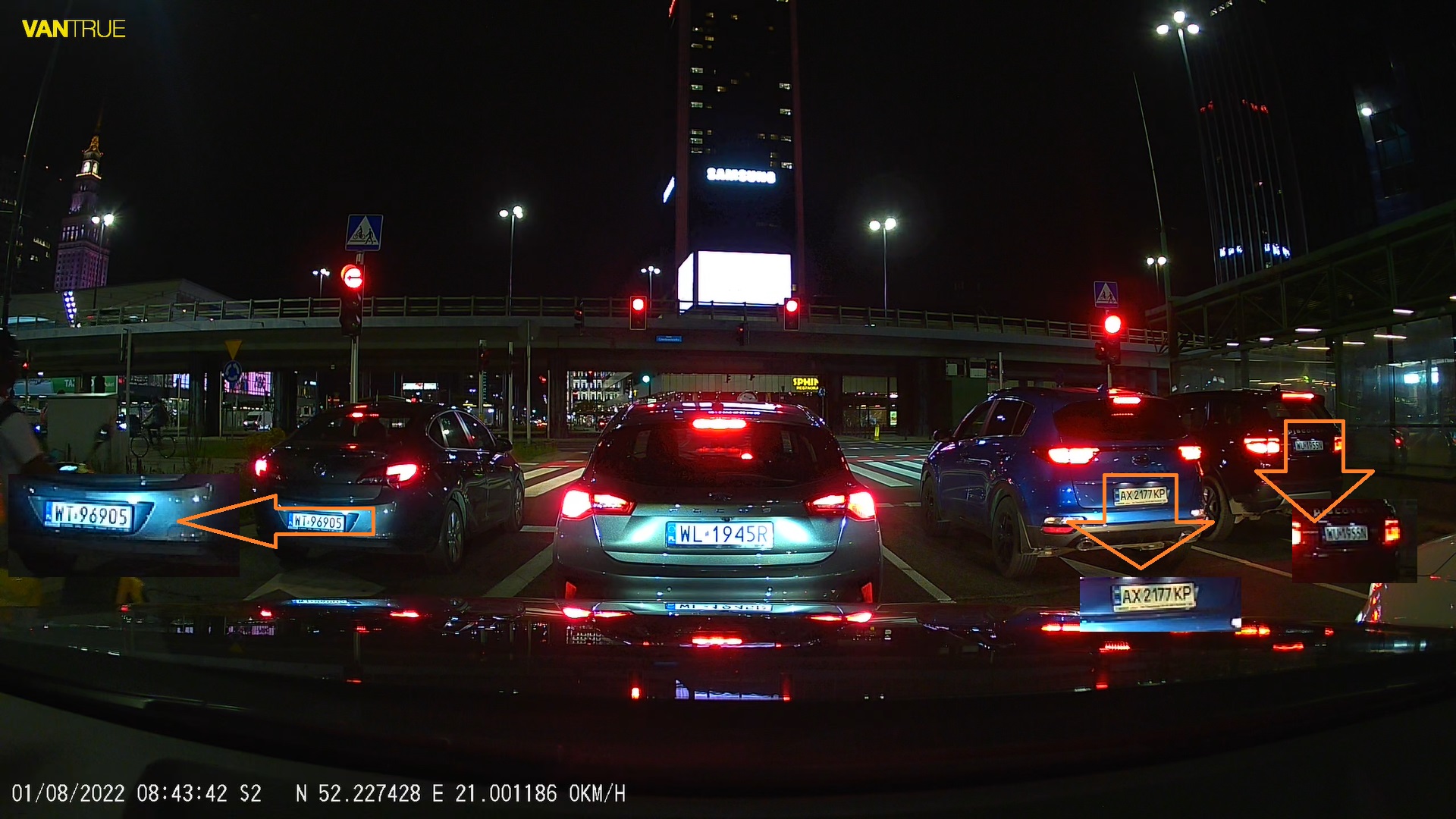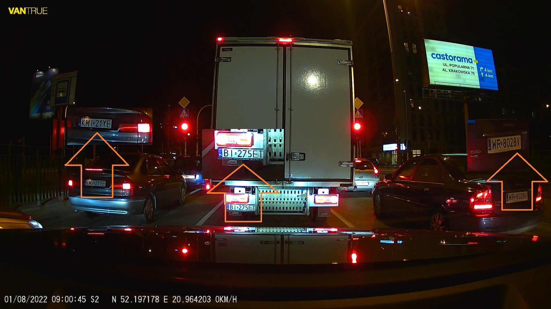 Przykładowe migawki z nagrań z kamery samochodowej Vantrue S2