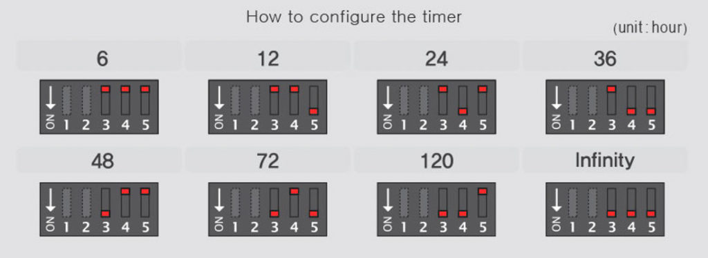 | odcięcie zasilania po określonym czasie | 6h, 12h, 24h, 36h, 48h, 72h, 120h, ∞ |