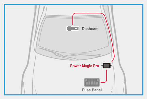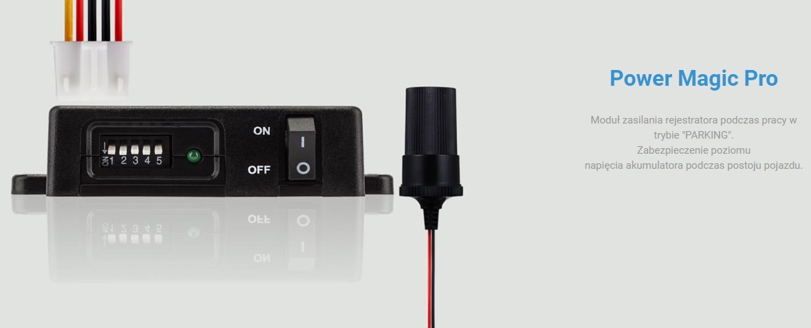 Urządzenia Power Magic Pro przekazuje zasilanie z akumulatora samochodu bezpośrednio do wideorejestratora, zgodnie z zaprogramowanym poziomem napięcia granicznego lub czasem ustawionym przez użytkownika. Dzięki Power Magic Pro twój akumulator w samochodzie jest zabezpieczony przed całkowitym rozładowaniem.