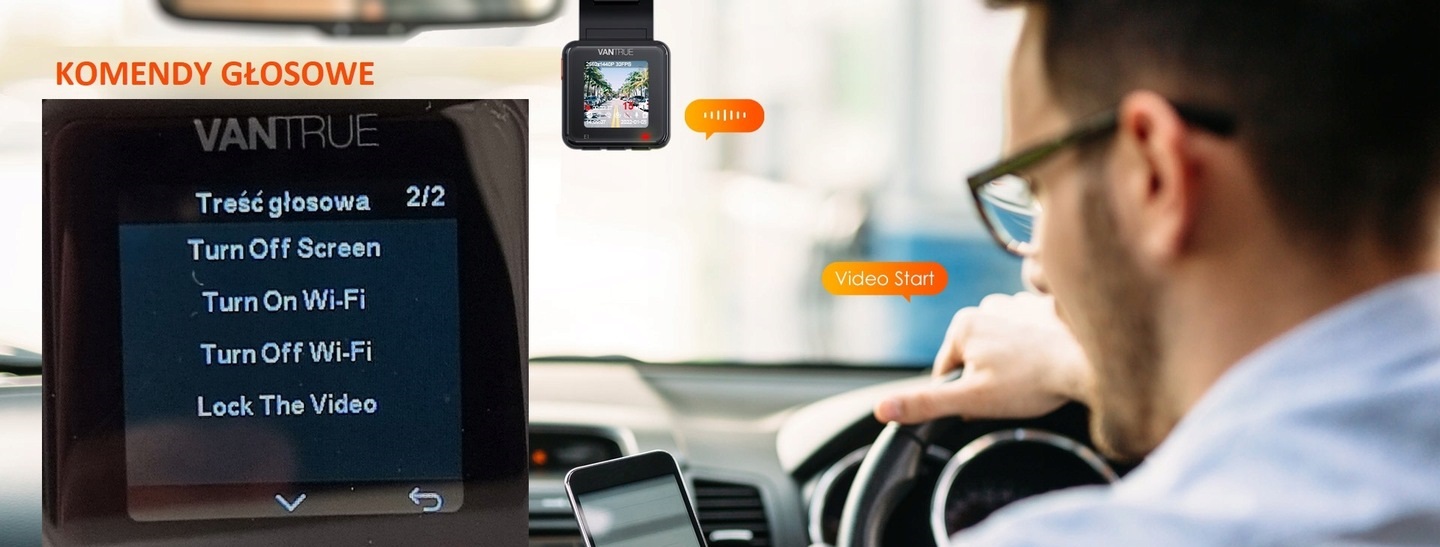 Mini i kompaktowa konstrukcja urządzenia zapewnia dyskretny montaż. Vantrue E1 posiada wygaszacz ekranu, dzięki czemu podczas jazdy nic nie rozprasza kierowcy, a na parkingu E1 czuwa nie rzucając się w oczy. Zaawansowana funkcja sterowania głosowego umożliwia robienie zdjęć, wyciszanie/wyłączanie wyciszenia mikrofonu, rozpoczynanie/kończenie nagrywania i blokowanie wideo za pomocą poleceń bez użycia rąk w wielu językach. Chroń swoją prywatność zawsze i wszędzie.