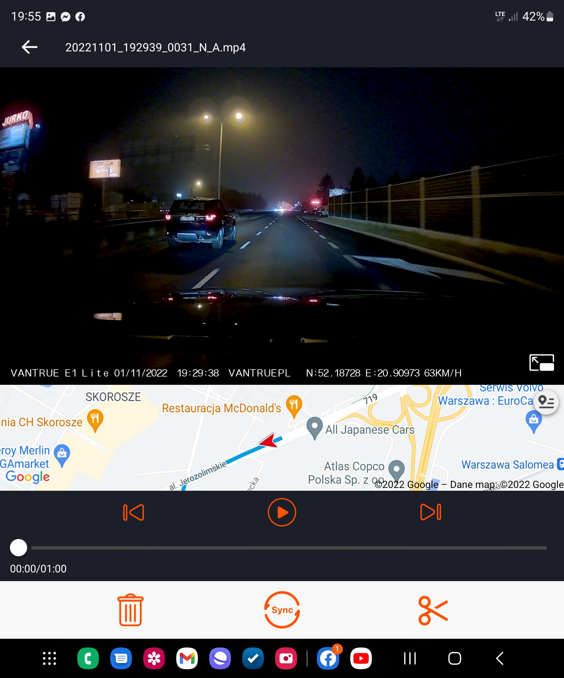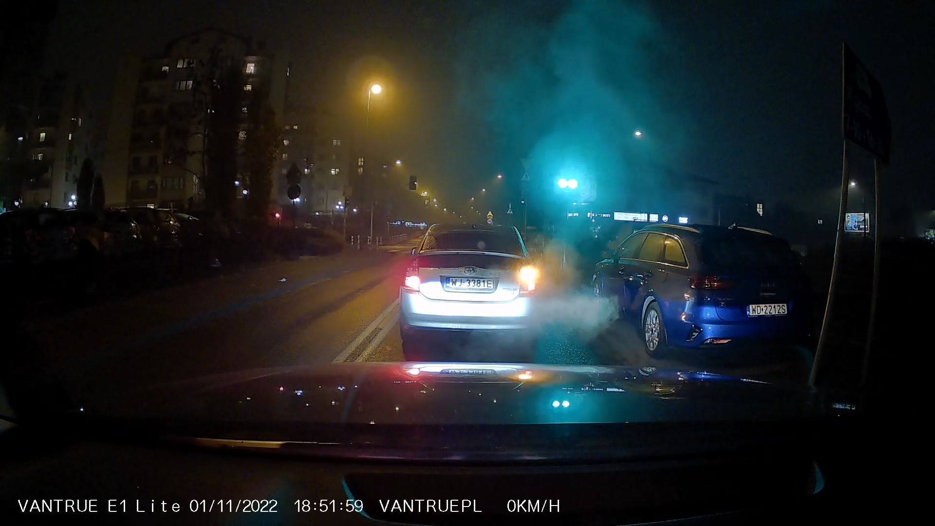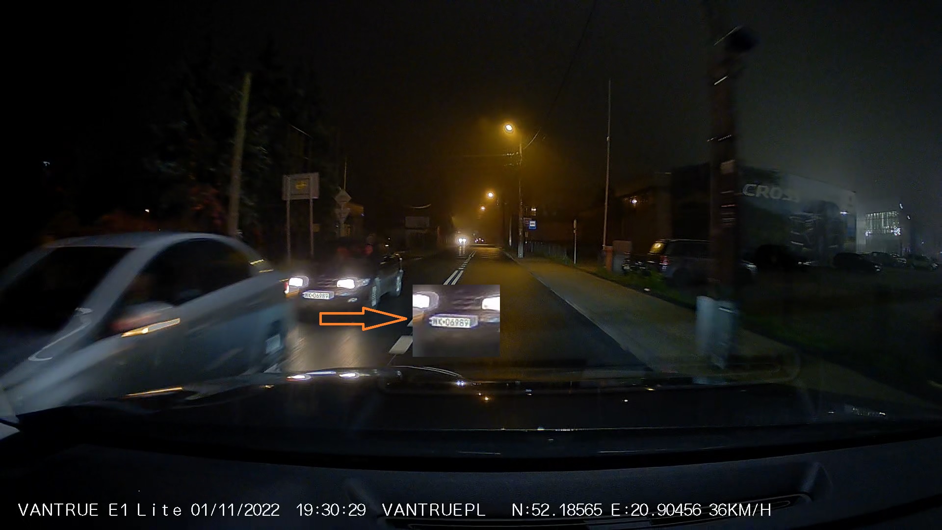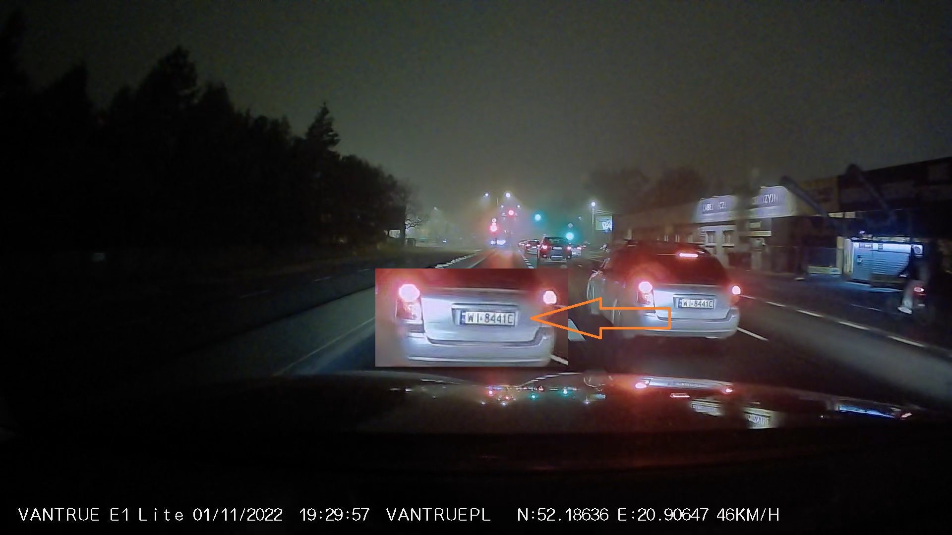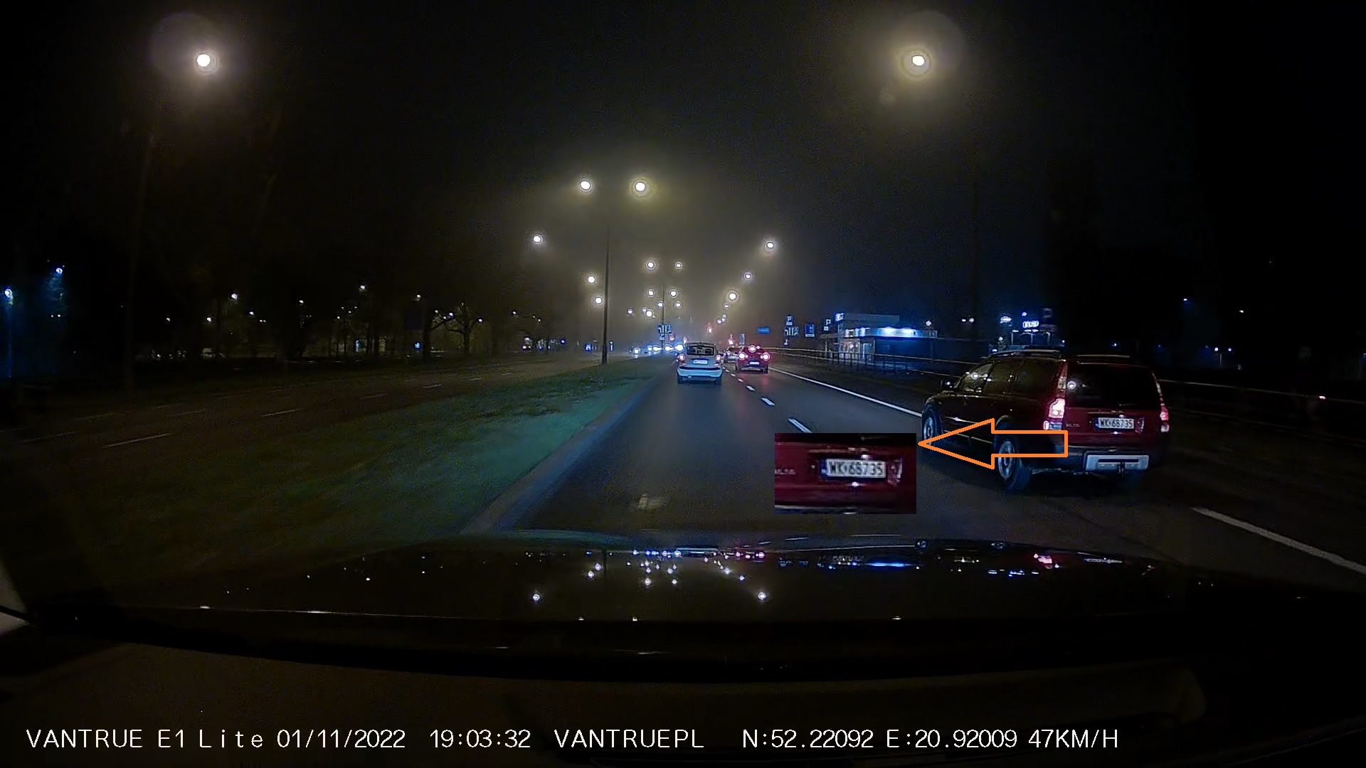 Za oknem bardzo ciemno, mżawka i spora mgła. Pogoda na testy najtrudniejsza, ale Vantrue E1 Lite poradziła sobie świetnie.