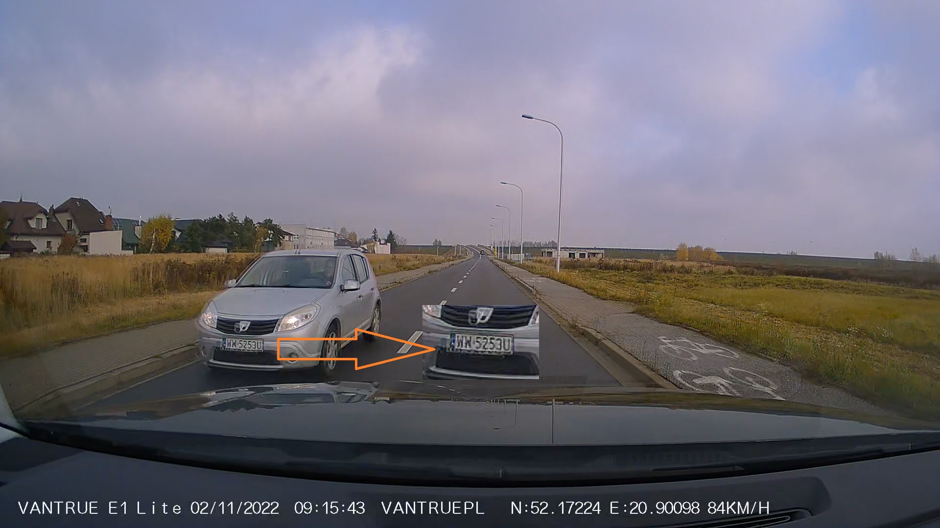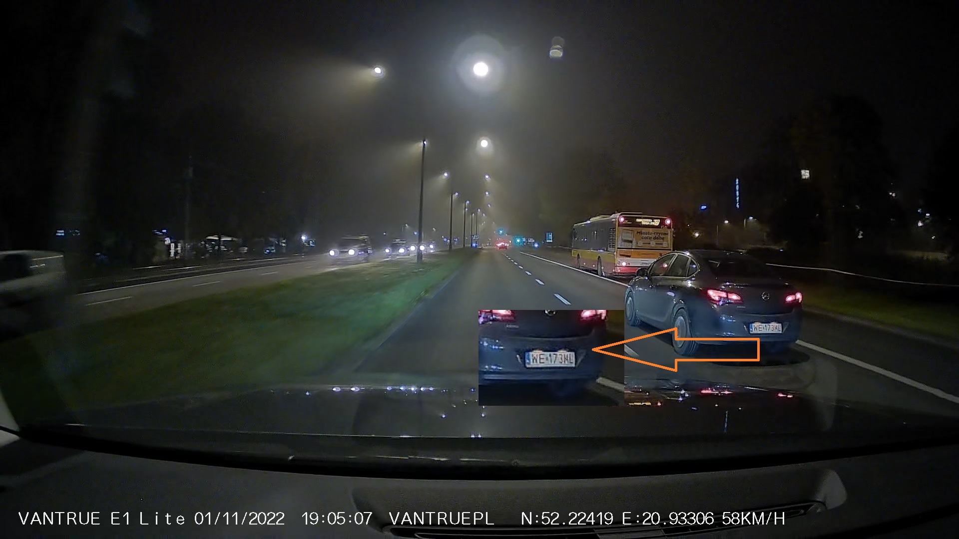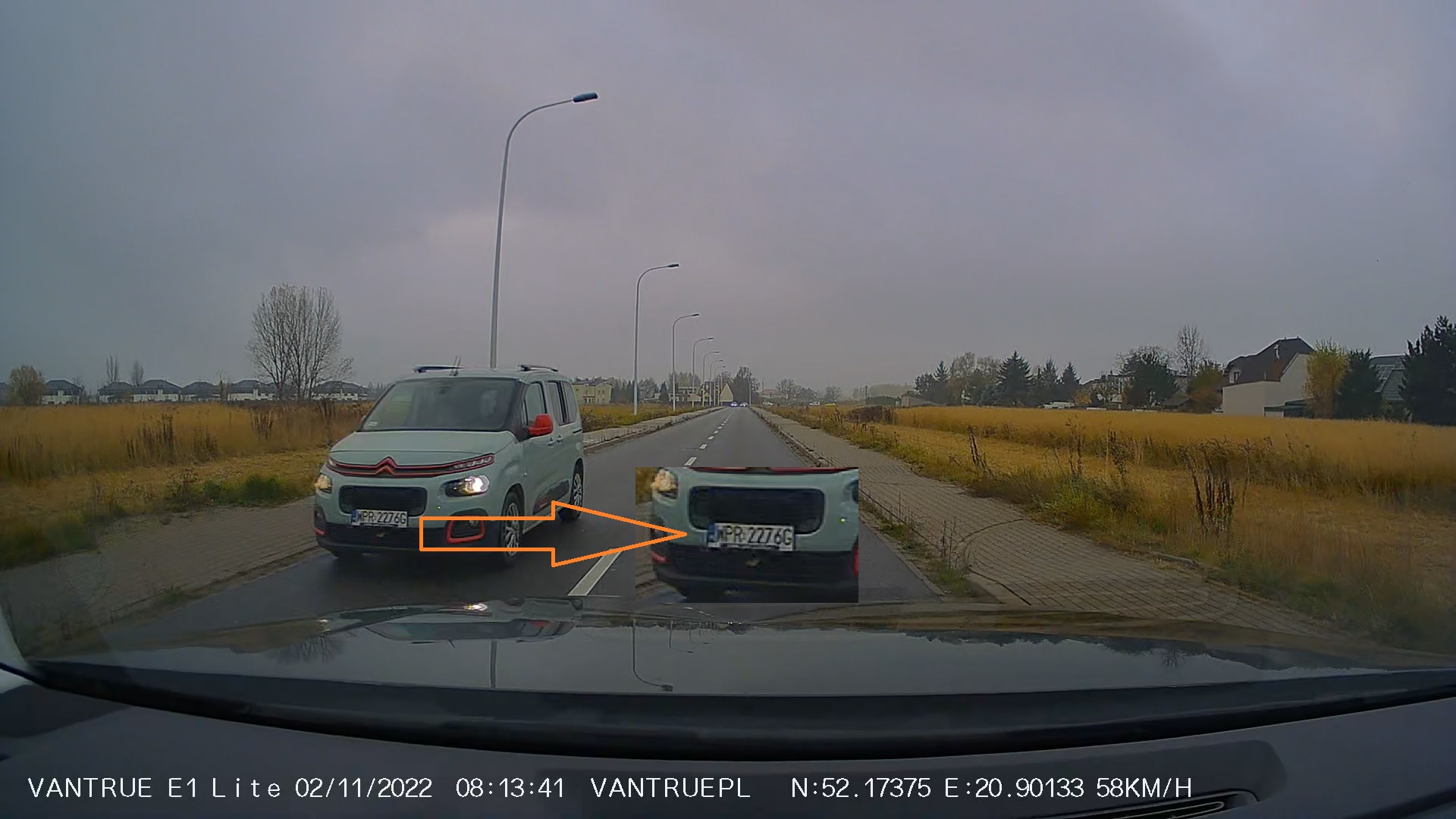 Przykładowe migawki z nagrań z kamery samochodowej Vantrue E1 Lite