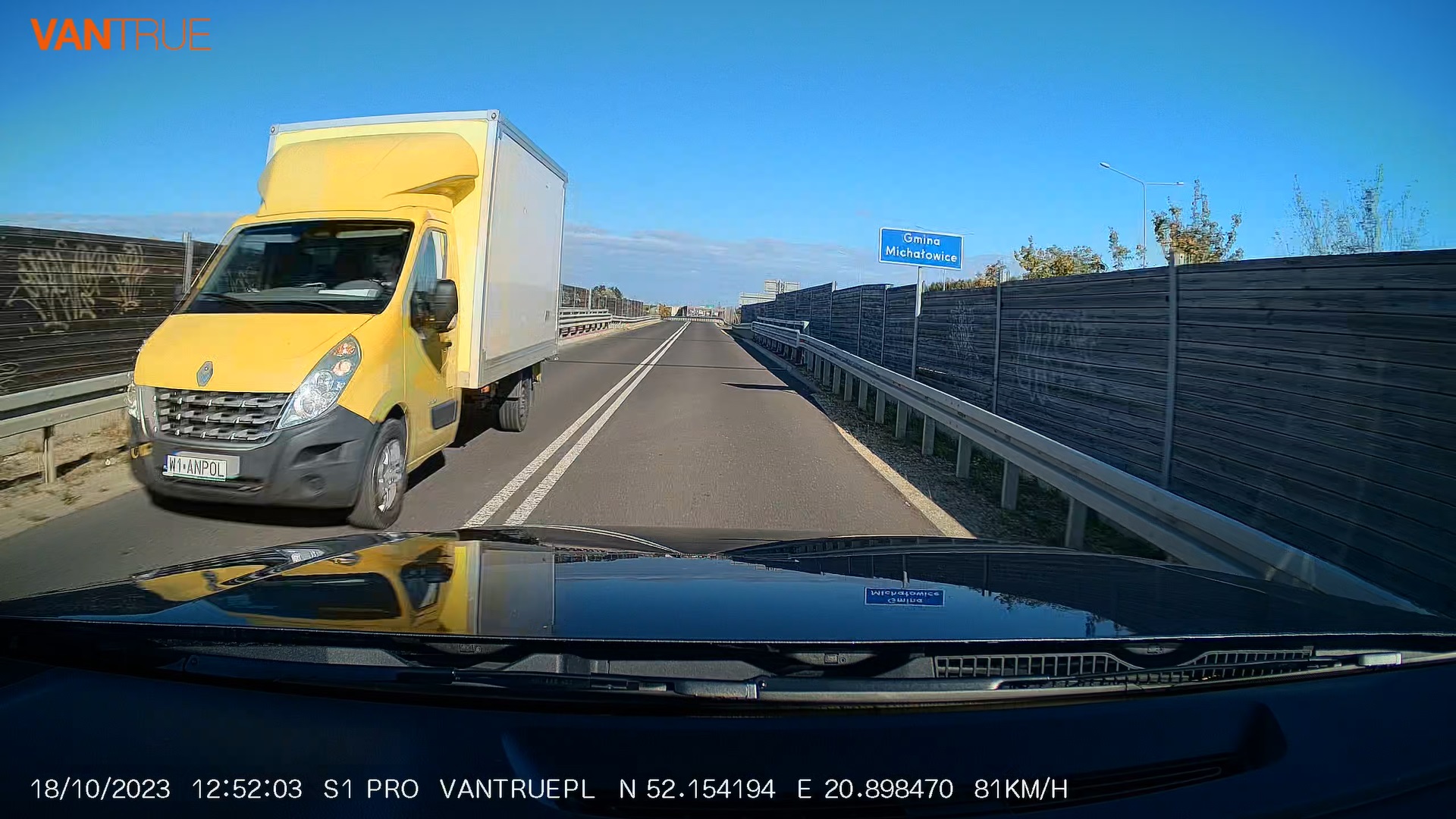 Przykładowe migawki z nagrań z kamery samochodowej Vantrue Sonnet S1 PRO